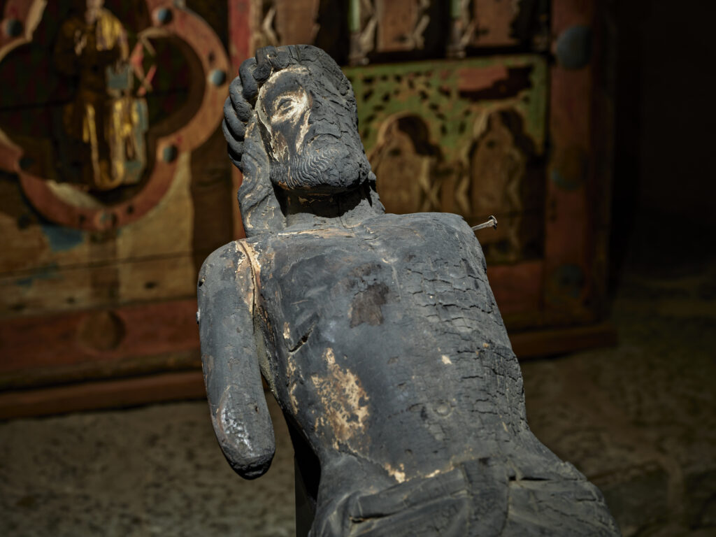 Den brandskadade smärtomannen från Fors kyrka. Foto: Ulf Tjärnström, Svenska kyrkan.