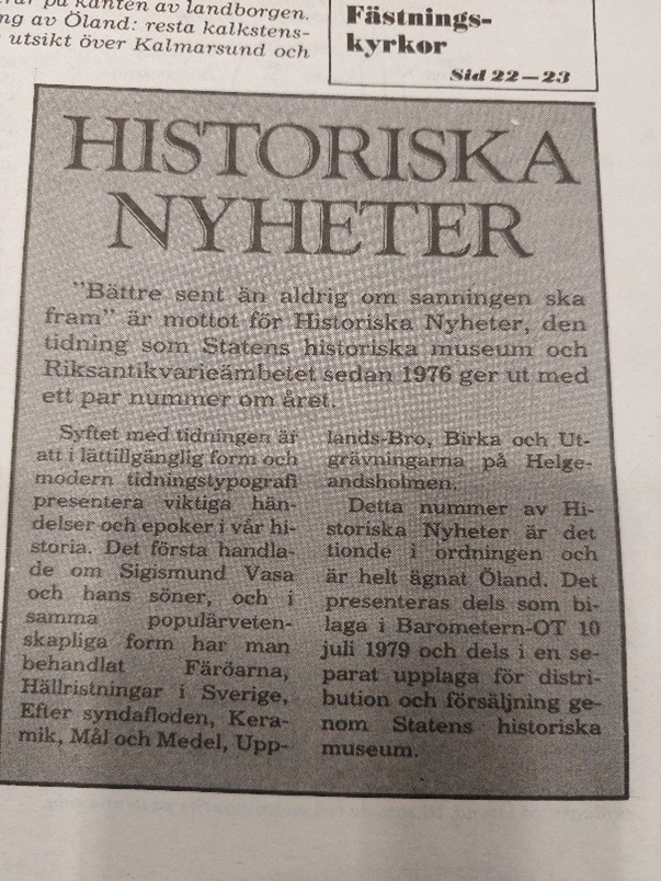 På Vitterhetsakademiens bibliotek finns samtliga exemplar från 1976-1998 inbundna i två stora volymer att låna och studera i läsesalen och här finns även de två specialnumren från 2003 respektive 2004/2005 för hemlån. För den som är intresserad av hur Historiska museet arbetat med kunskapsspridning och folkbildning under 1970-, 1980- och 1990-talet och ända in på 2000-talet är dessa tidningar en riktig guldgruva. Avsikten med tidningen var att i populär form berätta om komplicerade historiska förlopp för många människor. Något man måste säga att de lyckades väldigt väl med då tidningen under sina 23 år fick mycket stor spridning och var mycket uppskattad.