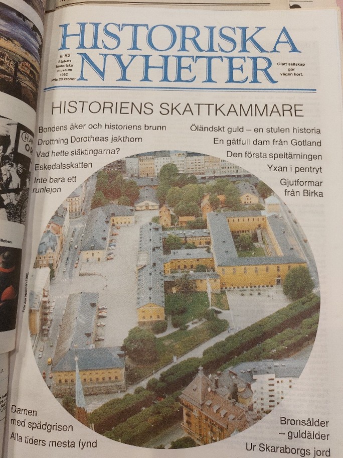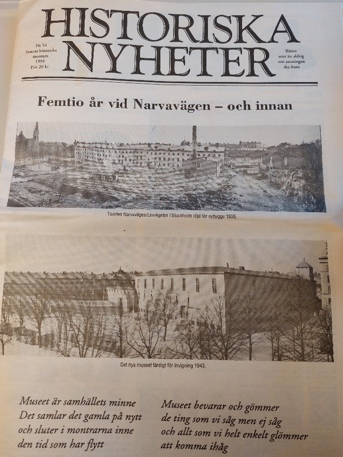 1993 kom tidningen ”Femtio år vid Narvavägen – och innan” om Riksantikvarieämbetets och Historiska museets historia från 1500-talets slut fram till modern tid. Numret är rikt illustrerat med foton från Antikvarisk Topografiska Arkivet (ATA) och visar bla lokalerna i Nationalmuseum där Historiska museet och Kungliga Myntkabinettet inrymdes från och med 1866, samt flytten till den nybyggda museibyggnaden på Narvavägen som invigdes 1943. Numret avslutas med invigningen av utställningen ”Den svenska historien” 1993.